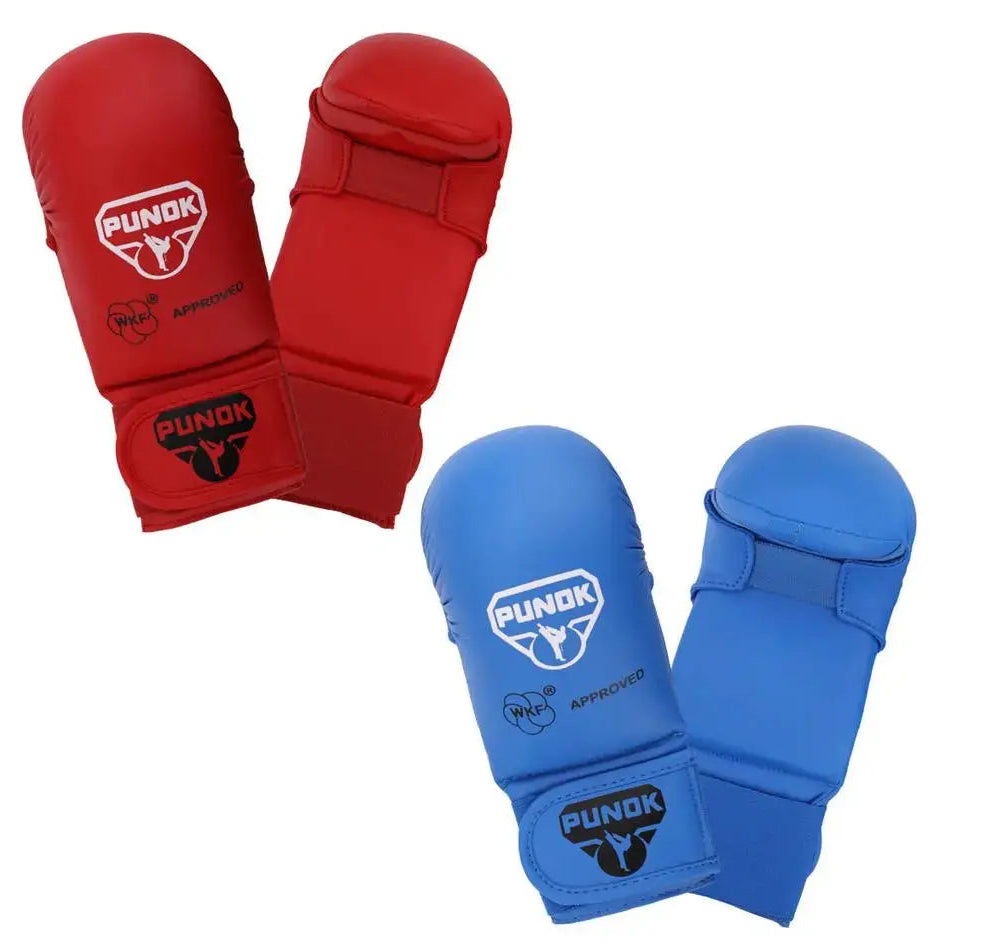 PUNOK karate rukavice priznate su od strane Svjetske karate federacije (WKF) i posebno dizajnirane za natjecateljske borilačke sportaše. Savršeno se slažu s vašim PUNOK karate Gijem. Ove rukavice su odobrene od strane WKF-a, što znači da ih možete nositi na svim službenim natjecanjima pod njihovom jurisdikcijom.